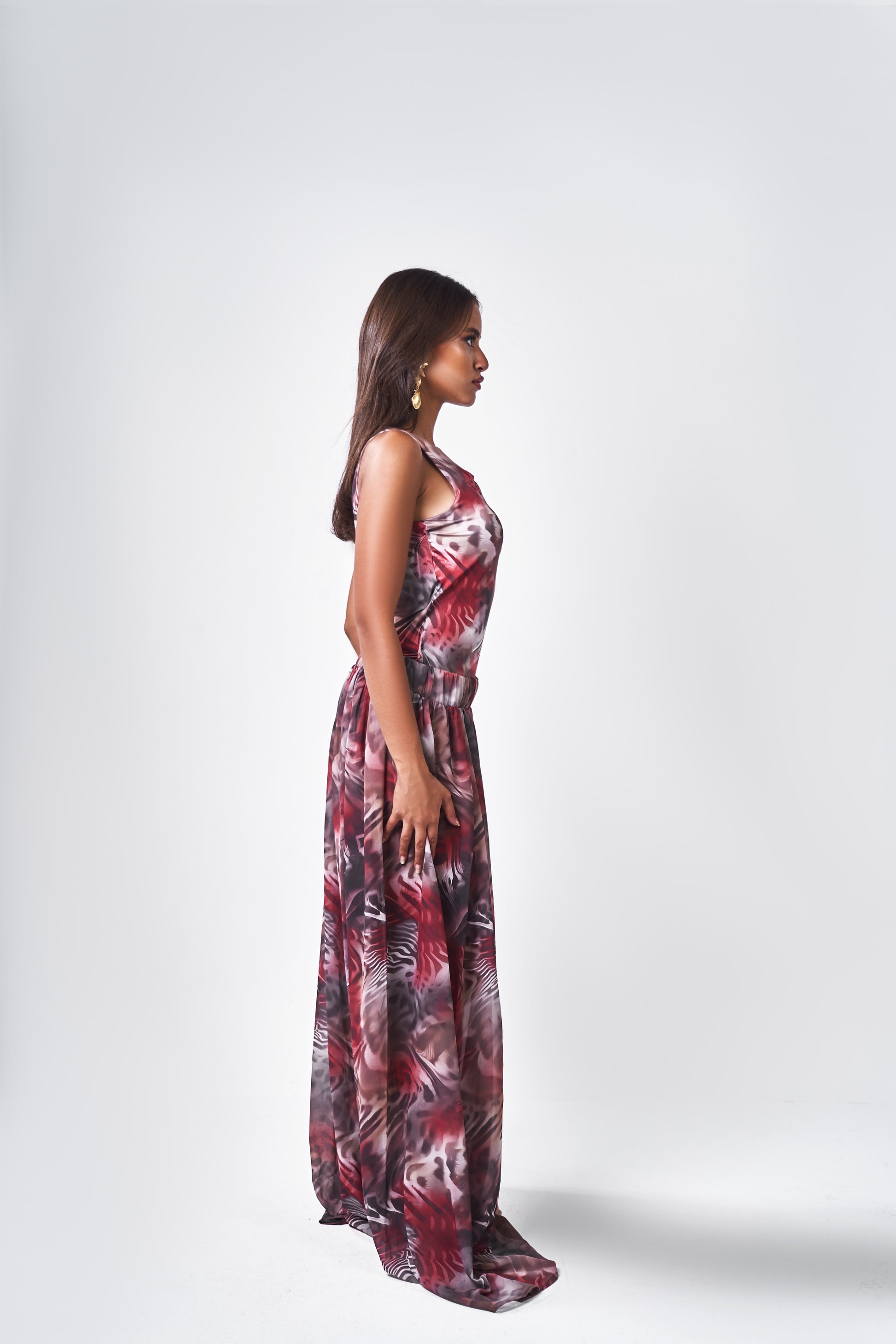 The waterproof maillot supports and shapes, while the sheer chiffon skirt adds a soft, flowing touch — perfect for beach days, yacht escapes, and every water-kissed moment in between.